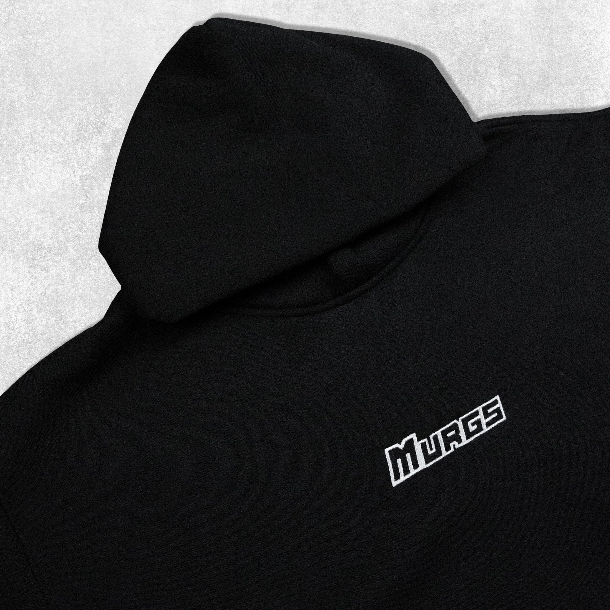 Black Murgs hoodie with an oversized fit, made with a heavy weight 500gsm super-fleece internal. Super soft with ribbed hem & cuffs. Seamless hood front for a superior fit and lay.